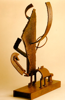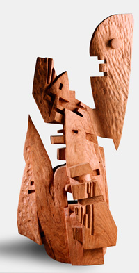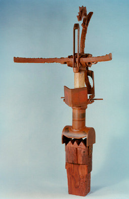 162 x 68 x 63 cm Chatarra soldada y patinada y talla directa en madera de quebracho |
